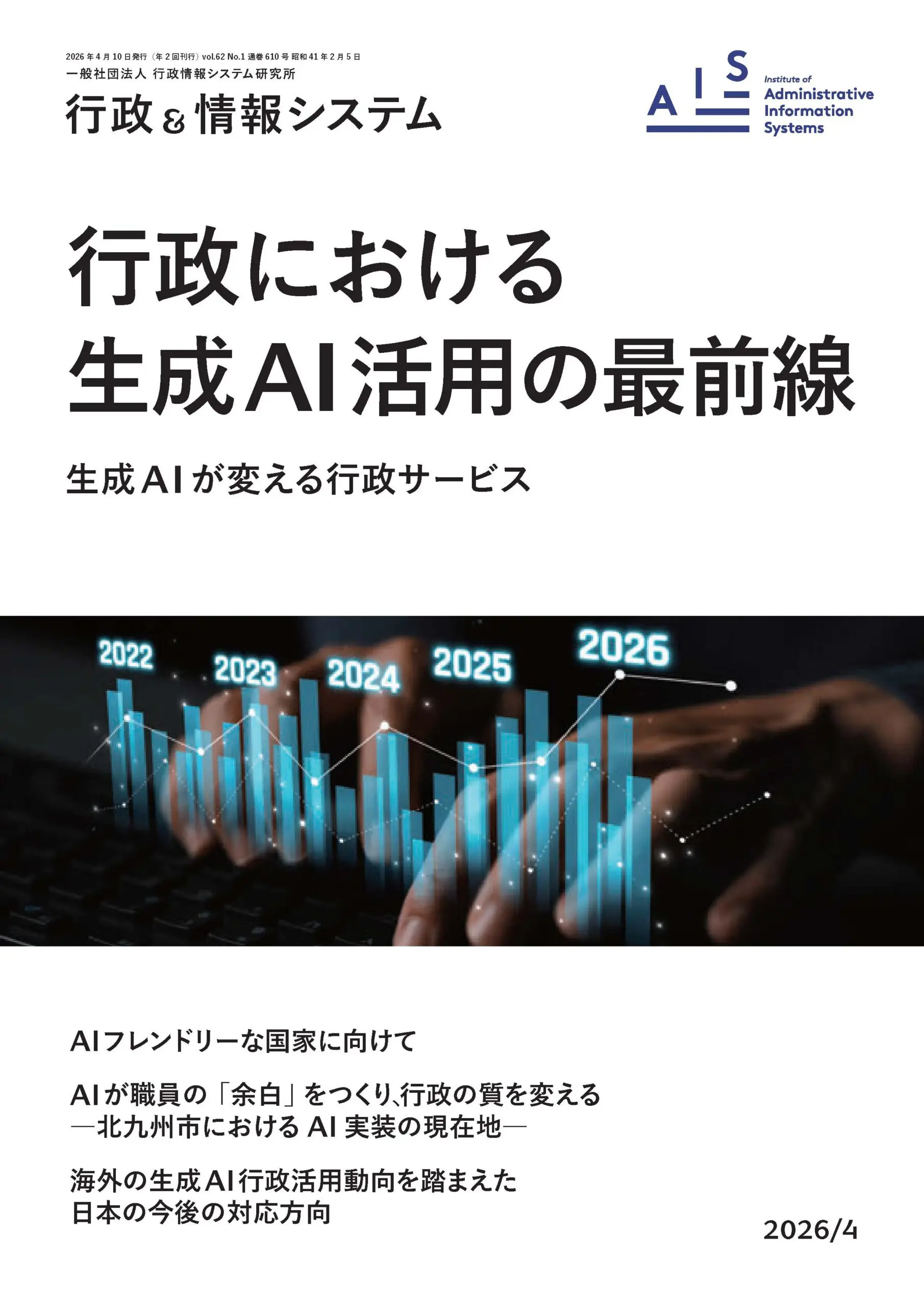 『行政&情報システム』2026年4月号特集では、行政分野における生成AIの活用の意義、期待される効果、想定される課題及び適正利用に向けた留意点、今後の推進方策について、有識者の見解、政府の政策動向、行政機関及び民間企業の事例等を通じて体系的に整理します。