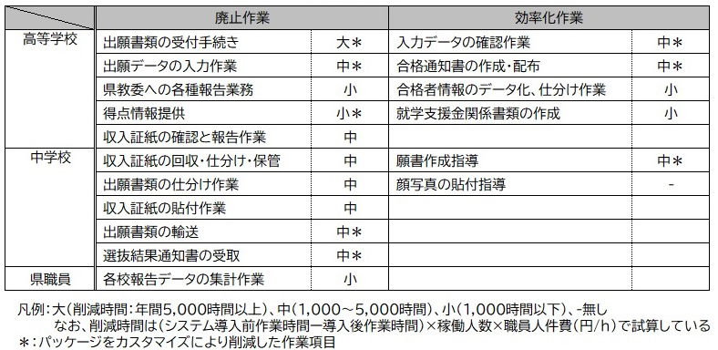 システム導入による廃止作業と効率化作業の削減時間を積算すると年間:約35,000時間となり、WEB出願システムは高校入試業務の効率化に大きく貢献しています。