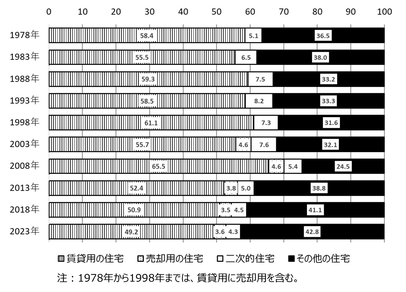 図2 日本の空き家の種類別割合の推移(1978年~2023年)