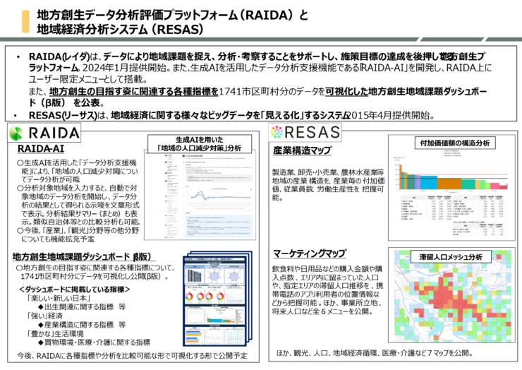 図1 地方創生データ分析評価プラットフォーム(RAIDA:レイダ)と地域経済分析システム(RESAS:リーサス)の概要